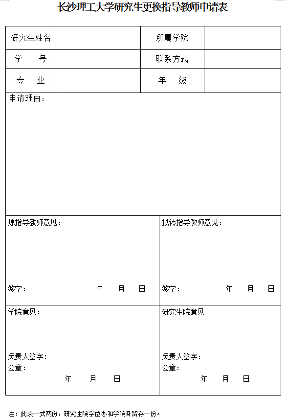 304永利集团官网入口研究生更换指导教师申请表