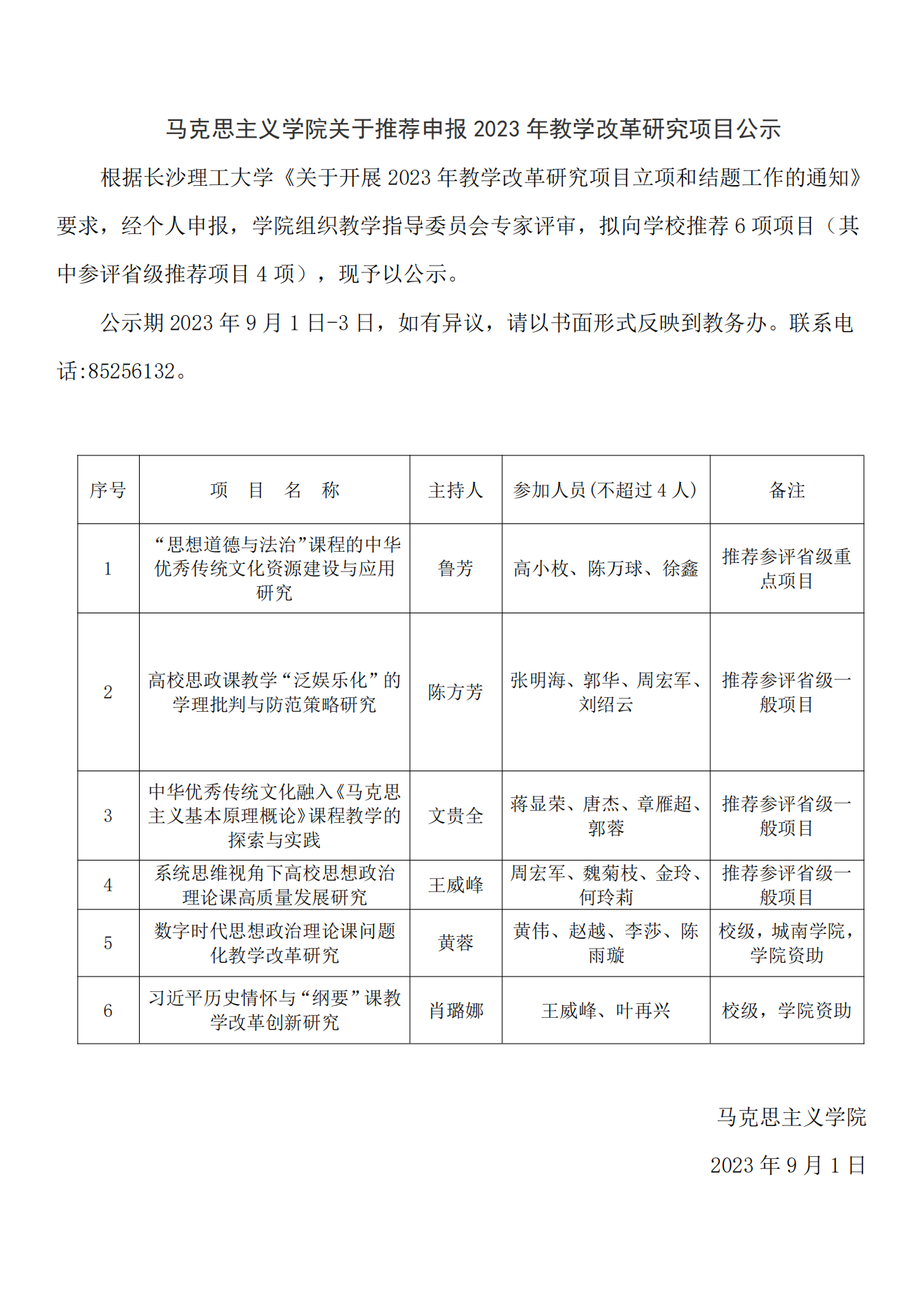 马克思主义学院关于推荐申报2023年教学改革研究项目公示