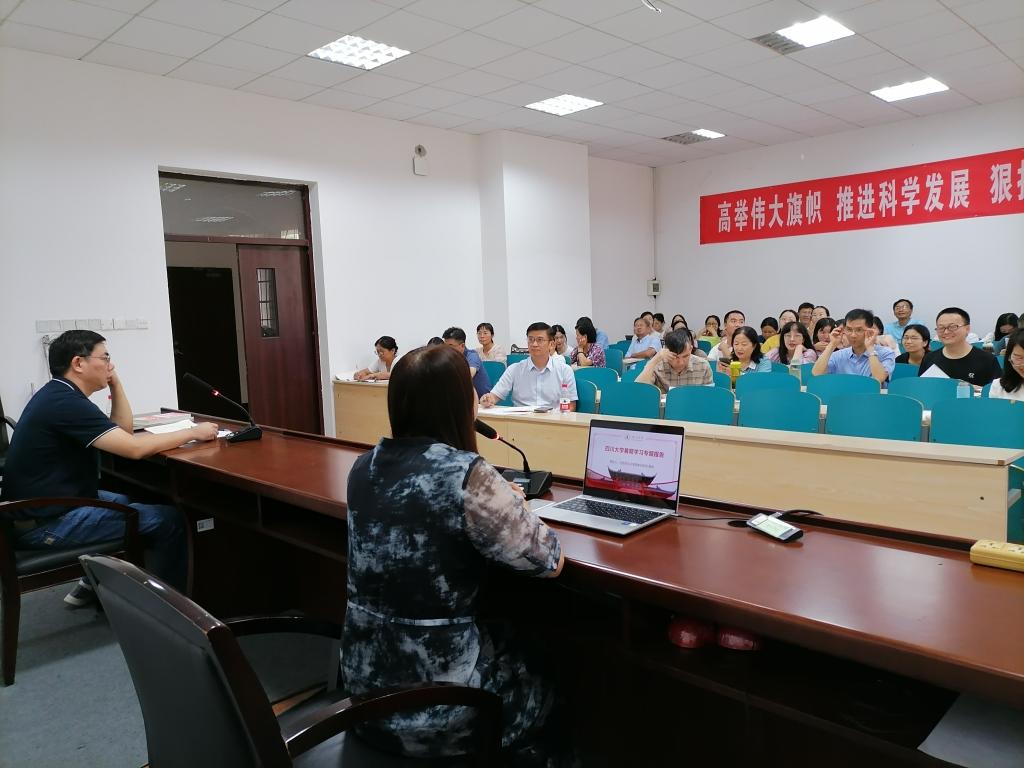 暑假期间,根据学校安排,我院教学副院长郭华在四川大学全国干部教育培训基地进行了为期一周的“304永利集团官网入口教学管理与教学创新专题干部研修”。为让研修成果辐射更多老师,2023年9月5日,星期二下午,学院召开全院大会,郭华副院长做了题为“以学生为中心 讲好立德树人关键课程”的暑期学习专题报告。