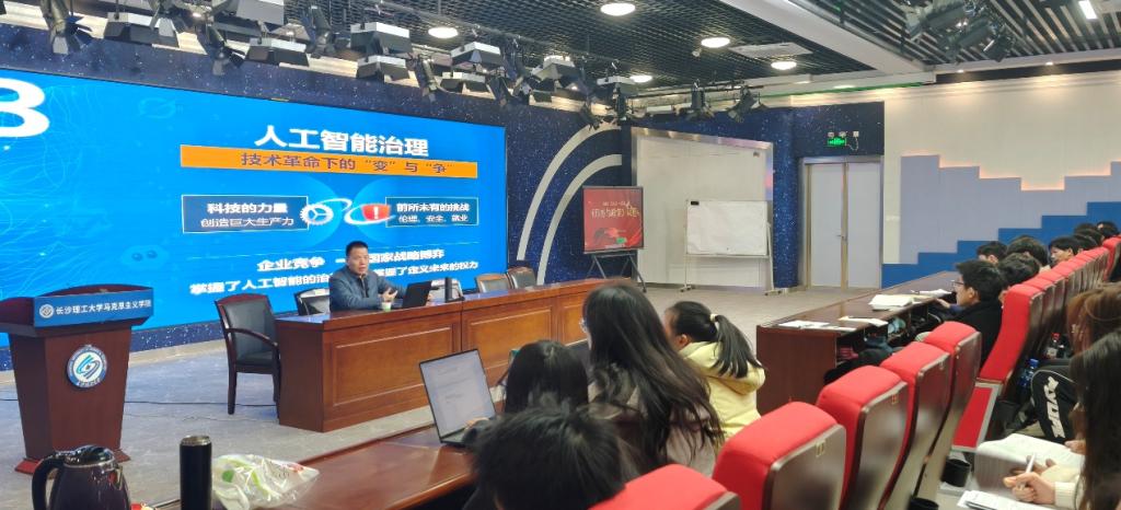 2025年12月6日上午,304永利集团官网入口马克思主义学院开展了《形势与政策》直播大课,在云塘校区文科楼 B300 报告厅举行。本次教学活动由副院长钟芙蓉主持,特邀国防科技大学周长峰副教授、湖南第一师范学院谭凯副教授担任主讲,采用 “现场授课+线上直播” 模式,云塘、金盆岭两个校区1万余名学生共同观看了直播课程。