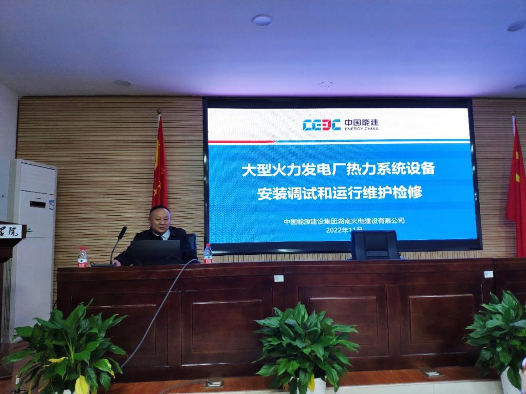11月16日,我院邀请中国能源建设集团湖南火电建设有限公司黄卫东总经理为能卓19级大四本科生作了《大型火力发电厂热力系统设备安装调试和运行检修维护》专题讲座,讲座由我院教学副院长田红主持。