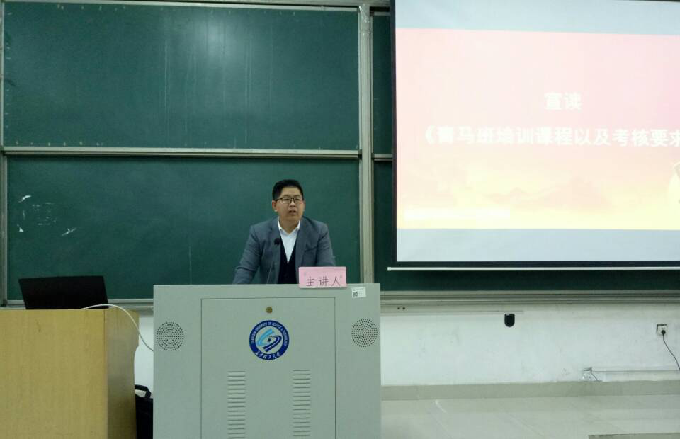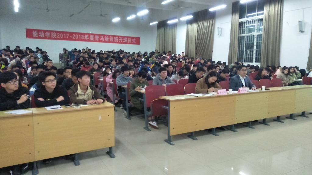 11月19日晚7点,能动学院于工一A106成功举行2017-2018年度青马培训班开班仪式。出席仪式的嘉宾有能动学院党委副书记、副院长杨雪峰,学生党总支常务副书记、学工办主任李小军,仪式由分团委书记罗亦欧主持。本次青马班分两个大班进行培训,分别由学生党总支全体成员,分团委学生会全体成员, 16、17级全体班委和年级负责人组成。