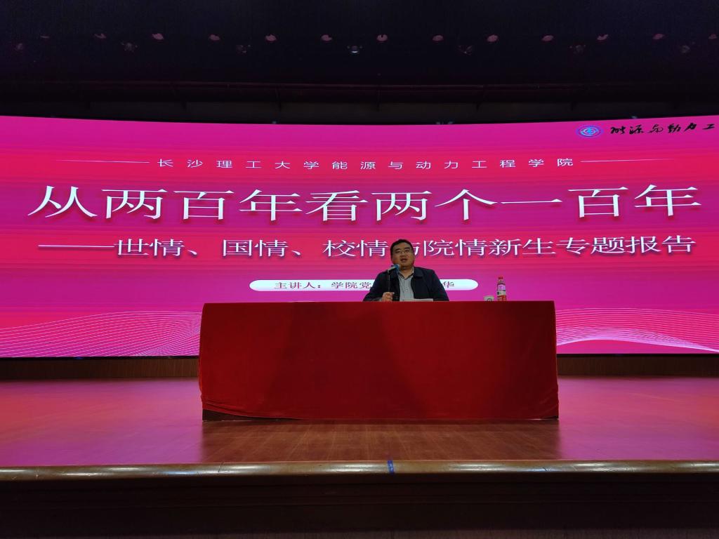 报告横跨两百年的历史,成华分阶段介绍了中华民族的屈辱史和奋斗史,他指出,在场的同学出生、成长于中国最安定、发展最迅速的时期,引导大家即便是在安稳的岁月中也要加强忧患意识与斗争精神。接着,成华为全体新生介绍304永利集团官网入口的历史,这是一所承载着时代责任、国家嘱托,伴随着共和国的发展共同成长的一所高校,也为大家讲述了学校发展的重要历史意义和使命责任。成华重点介绍了学院的发展历史,以及杰出校友在祖国一线前沿奋斗的事迹,发出“每一个能动人都应该找到自己的使命与价值,投入火热的能源建设事业,将历史与责任延续,把红色的江山建设得更加美丽”的号召,激励每一位能动人始终以国家“双碳”目标为己任,为构建绿色中国、低碳中国、美丽中国贡献力量。