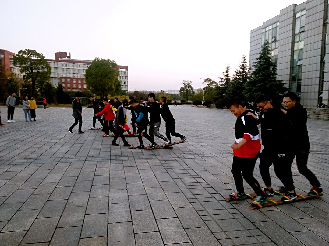 训练正式开始前进行了“大树与松鼠”的热身游戏,扮“大树”或“松鼠”的同学们积极行动,寻找新的合作伙伴,场面紧张而热烈,此游戏消除了同学们面对陌生面孔的害怕拘谨心理,活跃了现场的气氛;热身游戏过后,开始了第一个项目——“我们共有一个家”,游戏分为两个主要环节:一是“相识相知”,二是“建设组文化”,小组成员须在规定时间内起队名、写队歌、设计队旗,并举队旗合影;在“无轨电车”游戏,该游戏以各小组接力比赛的形式进行,考验队员团结协作的能力,活动中队员不到最后关头,谁都不认输,咬紧牙关,奋力前行;在“珠行千里”的游戏中,小组成员的感情和共事能力得到了升华,为将“珠”成功运输到目的地,队员不断调整速度,变换姿势,总结失败经验,努力尝试,直至成功到达目的地;在“信任坐”环节,同学们相互信任和彼此支持,完成有难度的团体动作,体会到团队合作的力量。拓展训练活动在所有参训队员的全家福留影中轻松愉快地落幕。
