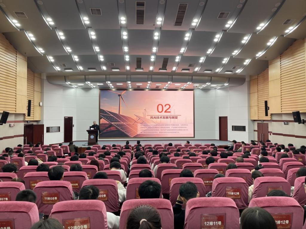 赵晓辉以中国碳中和愿景为引,从四重维度全面解析了我国风光发电的潜力、现状及未来发展蓝图。结合学术生涯与工作经验,他生动阐述了对风光技术及其所在行业的深度见解。通过列举风光产业现有的“风电+”“光伏+”等新兴发展模式,认为火电虽仍是能源行业的基石,但新能源产业如风光发电正展现出强劲活力。期间,他通过讲述个人成长经历,激励同学们要博采众长、独立思考,并通过广泛阅读提升综合素养,以主动适应社会的快速变化与发展。