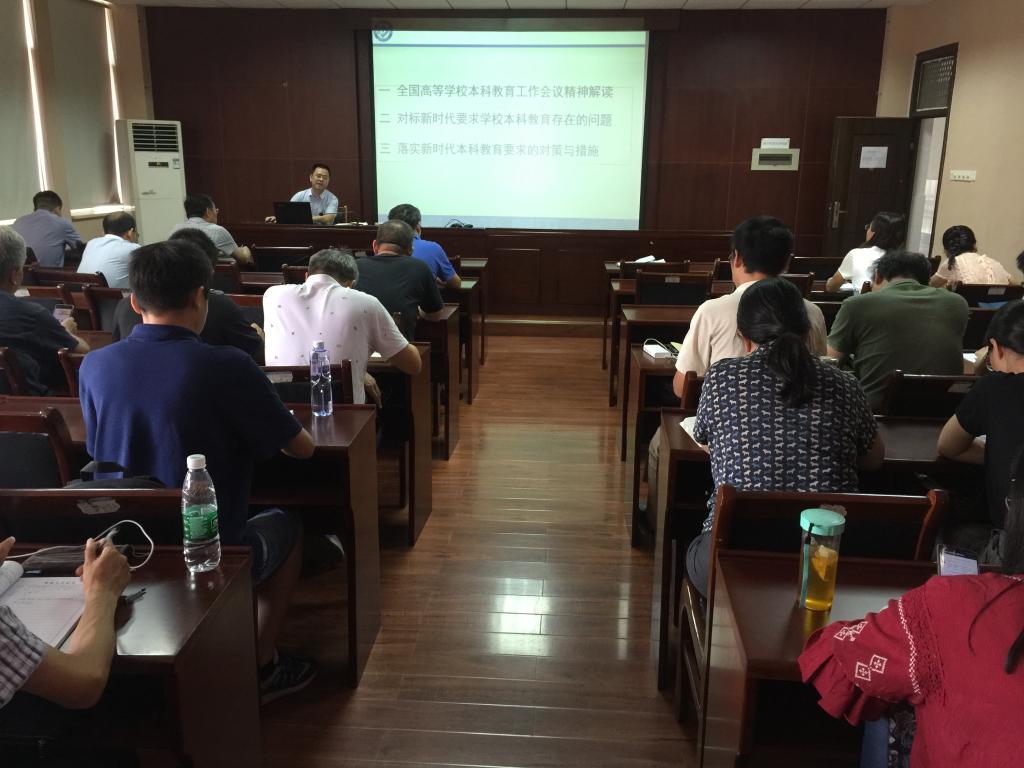 陈荐院长传达了2018年学校本科教育工作会议精神,陈院长指出,把本科为本、人才培养为本切实落实到四个回归办学治院全过程,院领导注意力要首先在本科聚焦,教师精力要首先在本科集中。学院将把人才培养的“底色”作为衡量人才的根本标准,用自己的尺子量自己,在培养质量上强化特色,立德树人,严进严出。把师德师风作为教师队伍素质的第一标准,把课堂教学质量作为衡量学院办学水平的第一指标,把学习作为学生的第一要求。学院将全面梳理影响本科教育改革发展、影响以本为本、四个回归的主要问题,认真查找本科教育中还存在的问题,围绕课堂教学、实习实践、毕业设计等重点领域专题研究部署,制定整改措施和学院振兴本科教育工作方案,明确时间节点,狠抓落实到位。