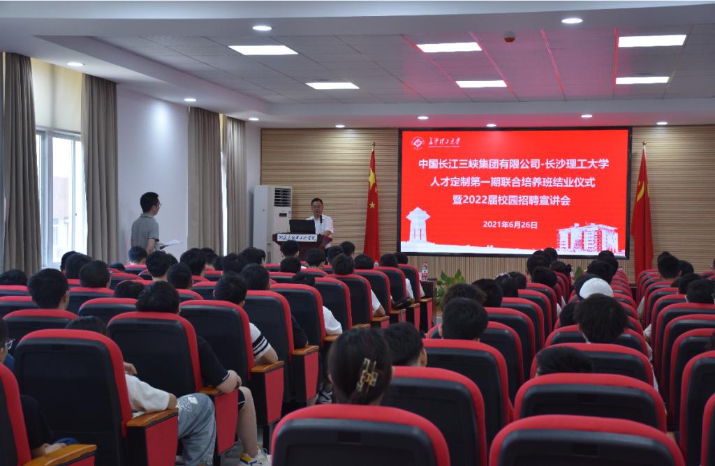 6月26日上午,中国长江三峡集团有限公司-304永利集团官网入口人才定制第一期联合培养班结业仪式暨2022届校园招聘宣讲会于新能源大楼2号楼502顺利召开,中国长江三峡集团有限公司代表、永利官网招生就业处、党委组织部、教务处代表及能动学院和联培班师生共120余人参加了此次活动。