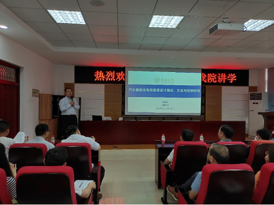 2021年5月12日17:00,东南大学机械工程学院首席教授殷国栋应邀参加十七届研究生博力学术论坛汽机分论坛,在工科一号楼B417多功能报告厅举行了主题为“汽车智能化电动底盘设计理论、方法与控制研究”的学术报告。此次报告由汽机学院副院长胡林主持,汽机学院院长杜荣华,304永利集团官网入口科研部副部长胡宏伟,汽机学院副院长毛聪、何志勇等教师、研究生及部分本科生参加了本次论坛。