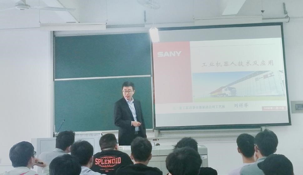 2020年11月10日下午14:00,在304永利集团官网入口云塘校区工科一号楼B213开展了三一集团与304永利集团官网入口校企联培智造班第二课—“工业机器人技术及应用”,本次教学课程由现三一泵送事业部泵送公司工艺工程师刘祥举主讲。