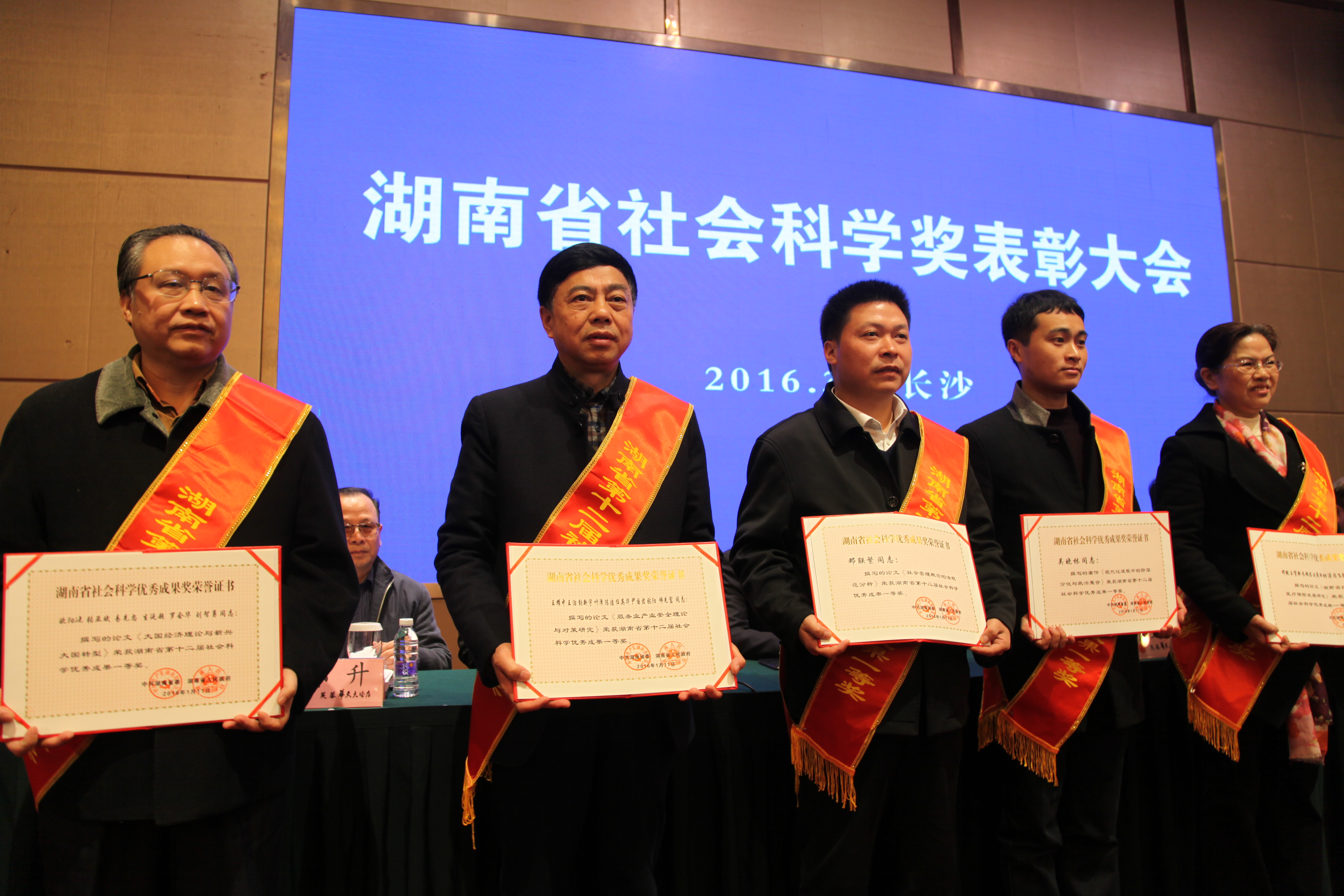 3月11日上午,湖南省社会科学奖表彰大会在长沙芙蓉华天大酒店召开。会上,省人大常委会副主任、省人民政府副省长李友志宣读了《中共湖南省委湖南省人民政府关于表彰湖南省第十二届社会科学优秀成果、第五届优秀社会科学专家、第三届优秀青年社会科学专家的通报》,全省获评湖南省第十二届社会科学优秀成果奖99项,其中一等奖14项、二等奖41项、三等奖44项,湖南省第五届优秀社会科学专家4人,湖南省第三届优秀青年社会科学专家5人。