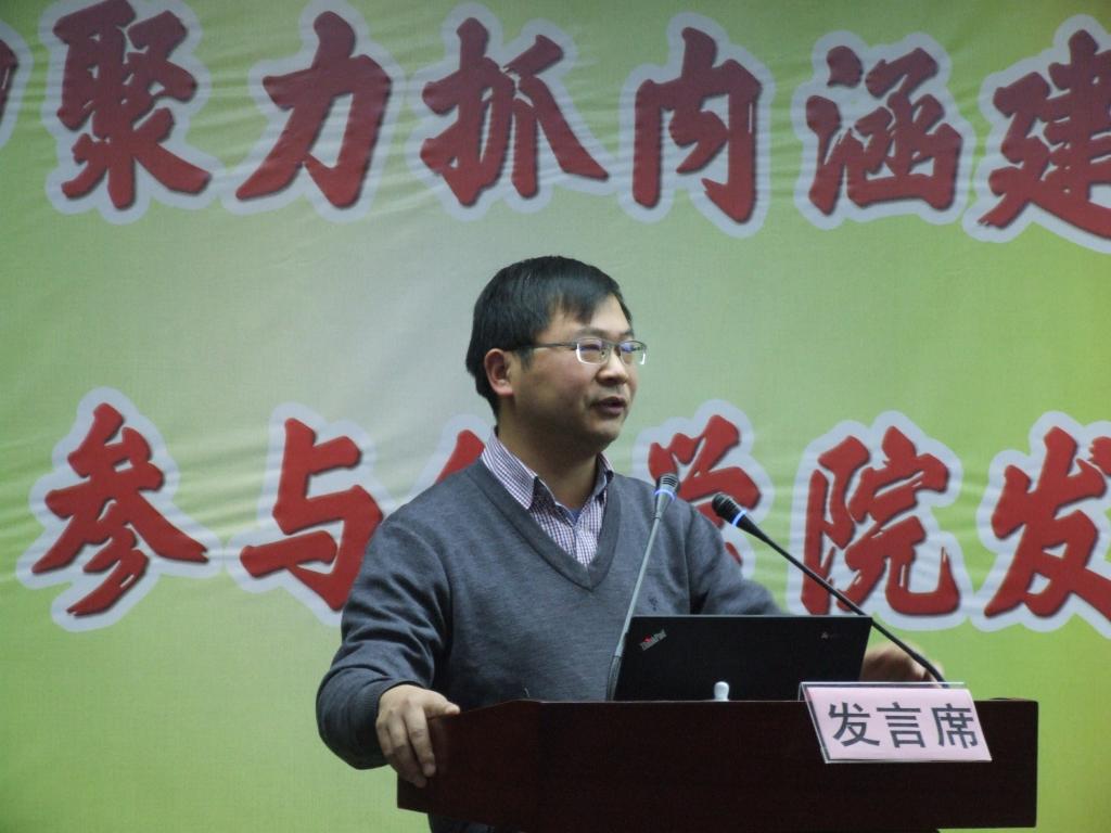 副院长程永舟教授做“强自信,补短板,鼓干劲,造学科高峰——水利工程学院学科和科研情况分析”报告,介绍了第四轮学科评估情况,对学院的科研情况进行了详细的剖析,并对学科发展提出了具体的建议。副院长蒋中明教授做“建设多层次科研团队,推动科技工作持续发展——关于水利工程学院科研团队建设思考”报告,阐述了科研团队建设的必要性,深刻剖析了学院科研团队 的现状,指出了学院“科研团队”运行存在的问题,并给出了科研团队建设的建议。教授代表张贵金做“人人贡献力量,铺就水利工程学科建设新台阶”报告,从教授角度出发,阐述了大力推进水利工程学科建设的必要条件,分析了水利工程学科发展现状,对今后的学科建设工程提出了建议。青年教师代表姚宇博士做“促进青年教师成长,把握学院发展未来”报告,详细分析了学院青年教师的基本情况,剖析了制约青年教师科研发展的因素,汇总提出了学院青年教师们对学科专业发展的建议。