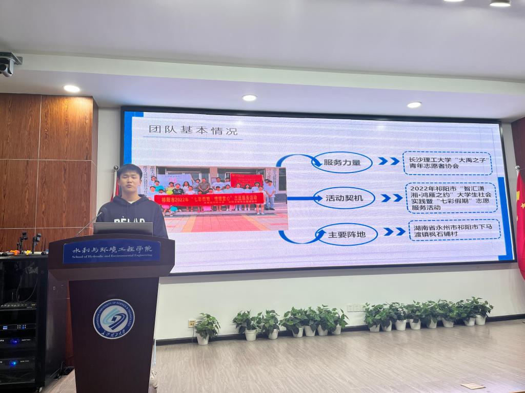 10月10日晚19:30,水利与环境工程学院在云塘校区工三B319开展2022年暑期“三下乡”社会实践成果展示答辩会。院党委副书记银波、院团委书记杜丘、院团委老师甯子豪以及20、21、22级学生代表担任本次活动的评委,共有13支实践团队参与本次答辩。