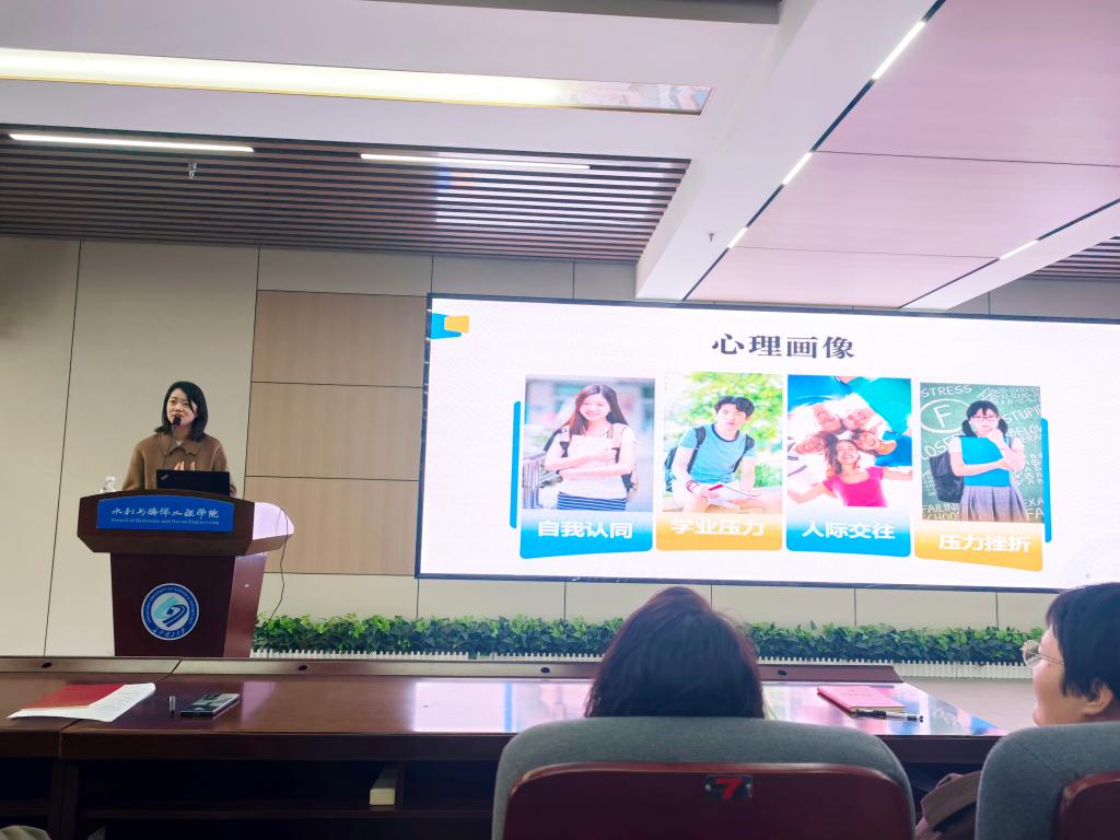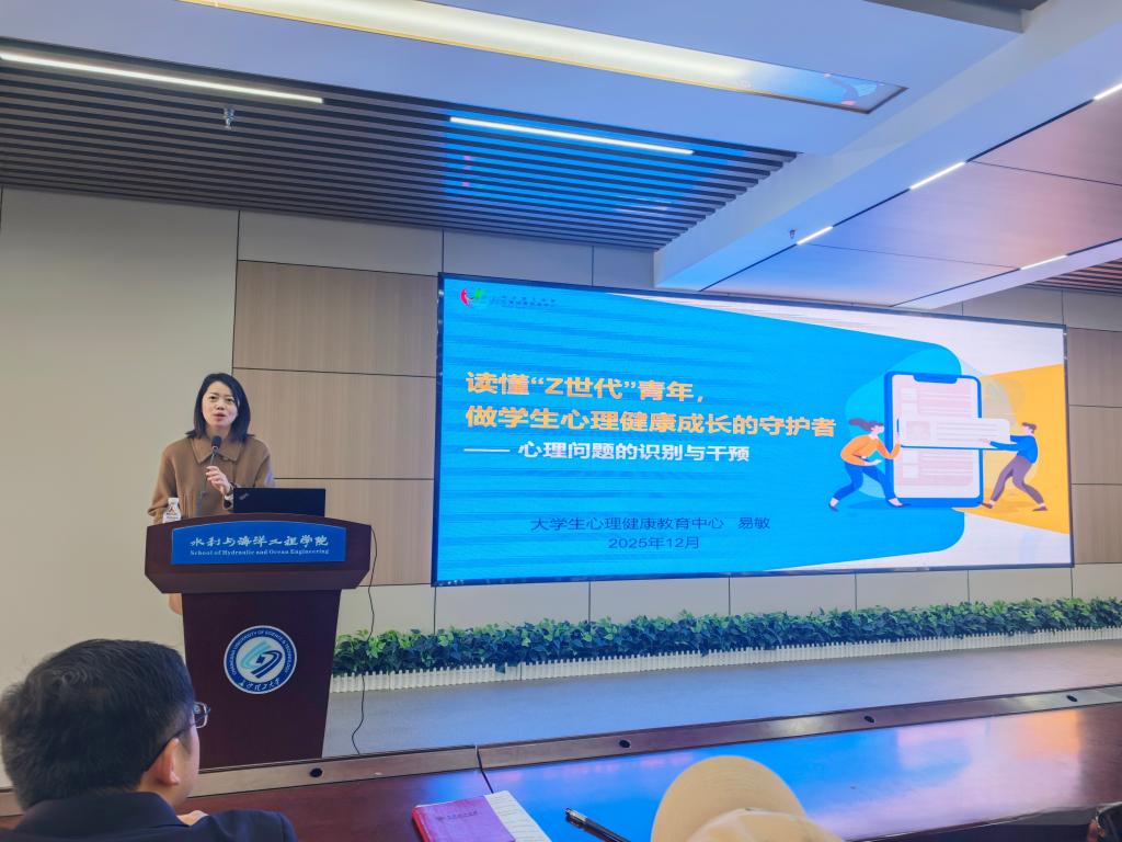 12月9日,水利学院在新能源一栋二楼会议室举办教职工心理健康专题培训。本次培训主题为《读懂“Z世代”青年,做学生心理健康成长的守护者》,由学校心理健康教育中心主任易敏老师主讲,学院全体领导、班主任、导师等120余名教职工参加。