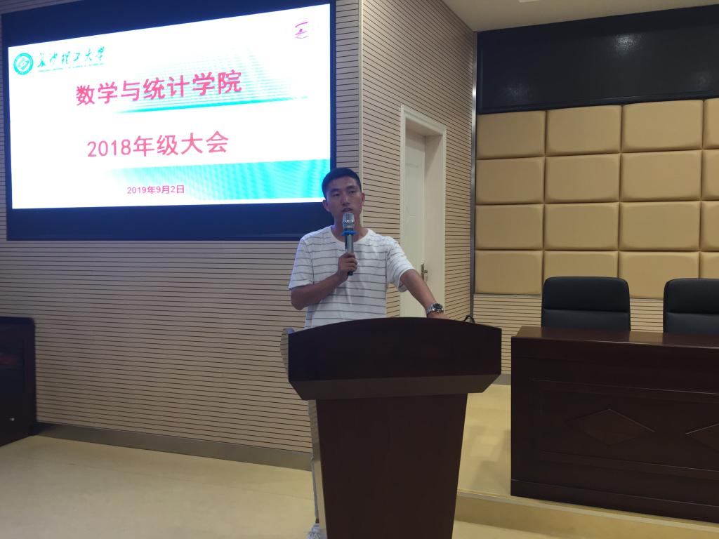 2019年9日2日下午,数学与统计学院在理科楼A200召开了18级在新学期的第一次年级大会。本次会议由18级辅导员柳映堂主持,18级全体学生与会。