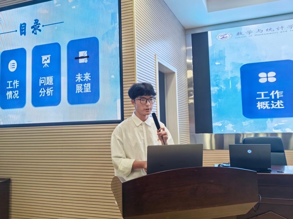2025 年 6 月 15 日,我院团委、学生会工作总结暨动员大会于理科楼 A200 召开。本次会议由办公室柏安骐主持,团委书记刘晓丹、团委副书记马欣宇、主席团成员单思敏、王雪芹、朱超以及各部门负责人和志愿者团成员出席本次会议。