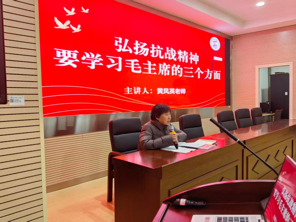 专题分享环节,黄凤英老师结合抗战精神与青年成长做交流,引导同学们把铭记历史转化为行动自觉:把爱国情怀落到学业科研、支部建设和服务同学的点滴里,做到心中有信仰、脚下有力量。