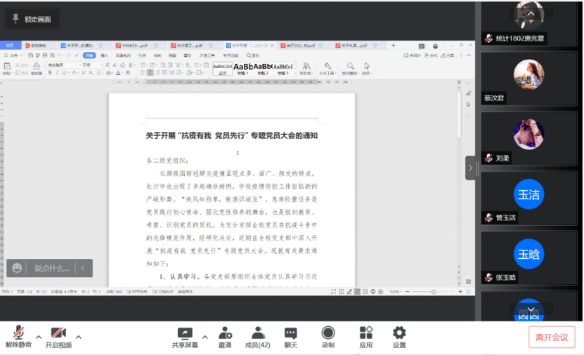 3月24日晚上,数学与统计学院本科生统计党支部线上举办党日活动,本次活动由周雨晴主持,本科生统计党支部全体党员参与。