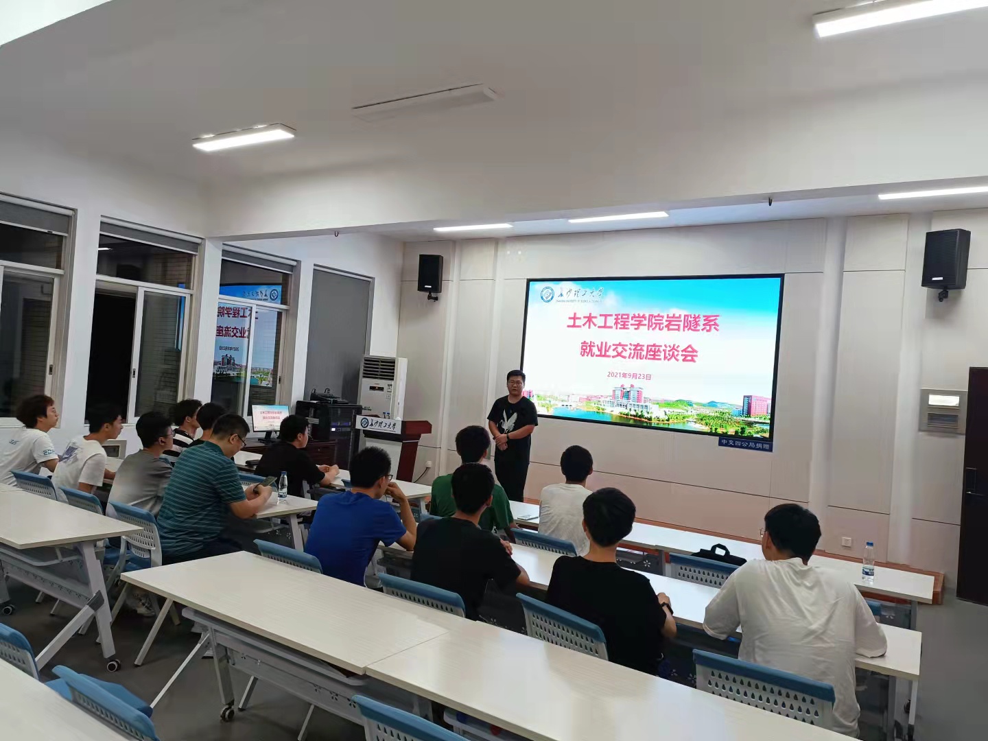 为进一步加强学生就业指导,帮助学生树立正确就业择业观。9月23日晚,土木学院在工二A304开展就业经验分享会。学院岩土隧道系主任张永杰、16级校友王诗友和岩隧系学生参加会议,院学工办龙承运主持会议。