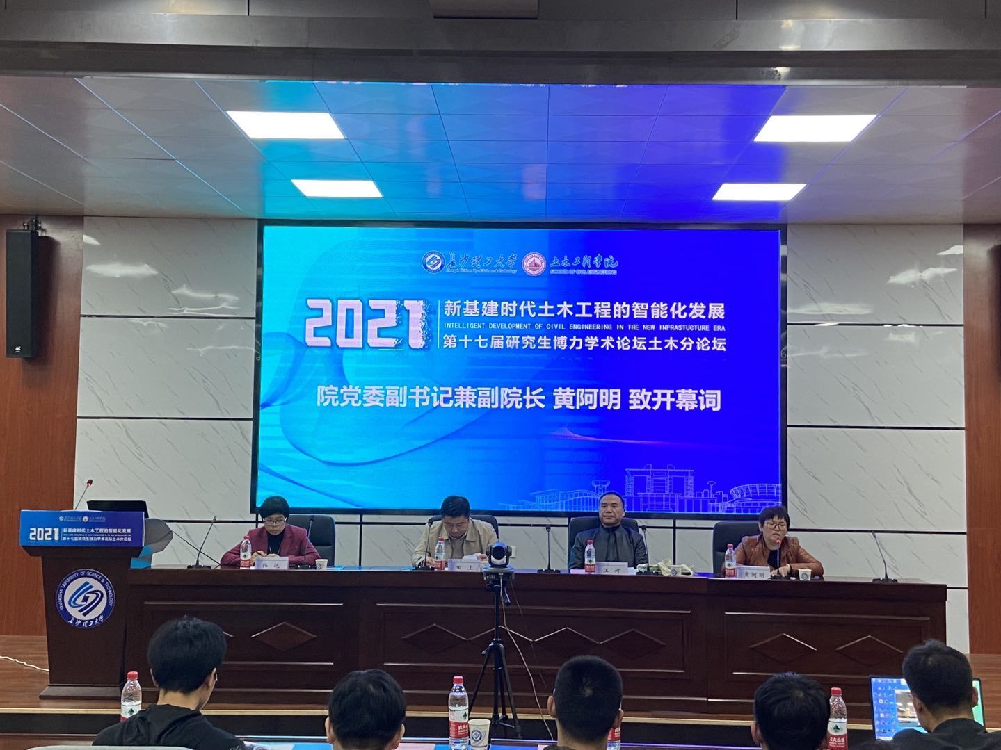 黄阿明致开幕词。对本次学术论坛开幕示祝贺,对出席本次分论坛的领导、专家及全体研究生表示最热烈的欢迎和诚挚的谢意。她指出,如何在新发展阶段抓住机遇是每一位土木人应该深刻思考的问题。希望全体研究生把论文写在祖国的大地上,把科技成果应用在实现现代化的伟大事业中。