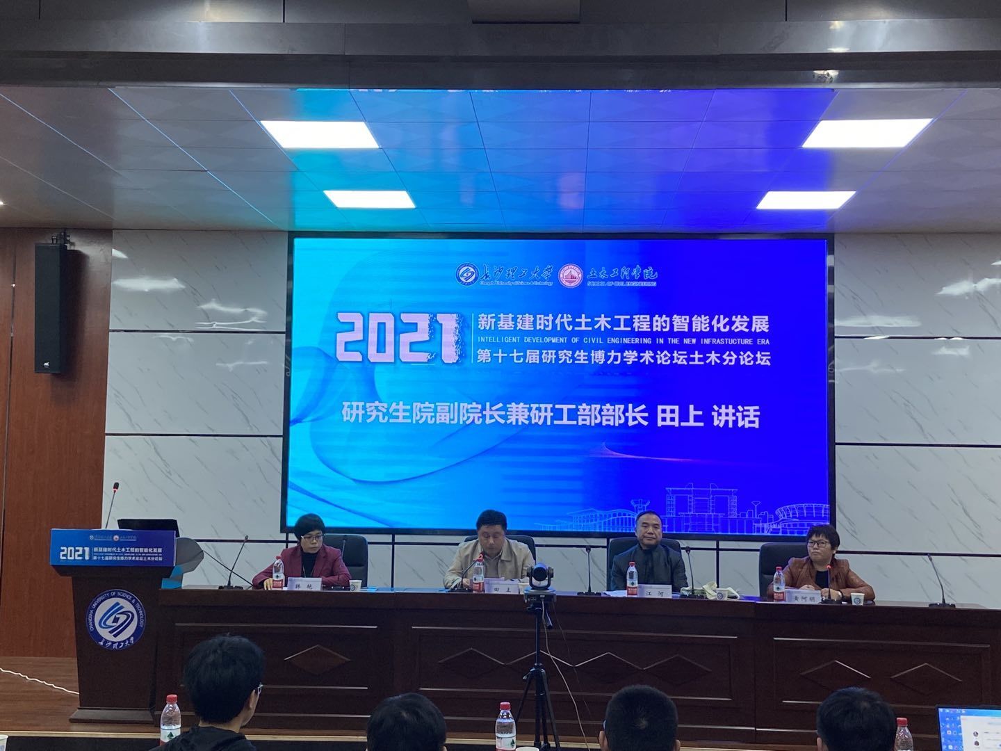 10月20日,304永利集团官网入口第十七届研究生博力学术论坛土木工程学院分论坛开幕式暨首场报告会在金盆岭校区四教学术报告厅举行。校研究生院副院长兼研工部部长田上,土木工程学院党委书记江河,党委副书记黄阿明、副院长韩艳,研究生辅导员李小军及200余名研究生出席参加开幕式。院研究生会主席蔡亚夫主持开幕式。