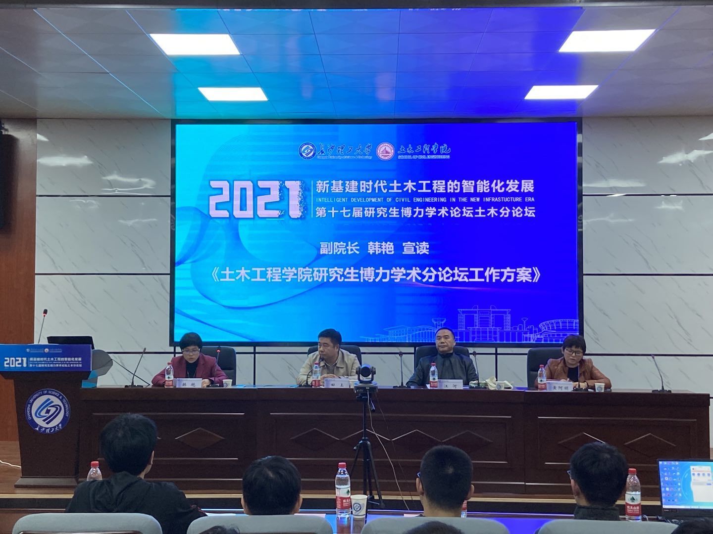 韩艳宣读《土木工程学院第十七届研究生博力学术论坛分论坛工作方案》,重点从活动主题、对象、时间、内容和要求等方面做了强调。本次论坛内容涵盖“高端论坛、博士有约、校友论坛和学术征文”四个部分,希望全体研究生提高认识,统一思想,广泛发动、积极参与。