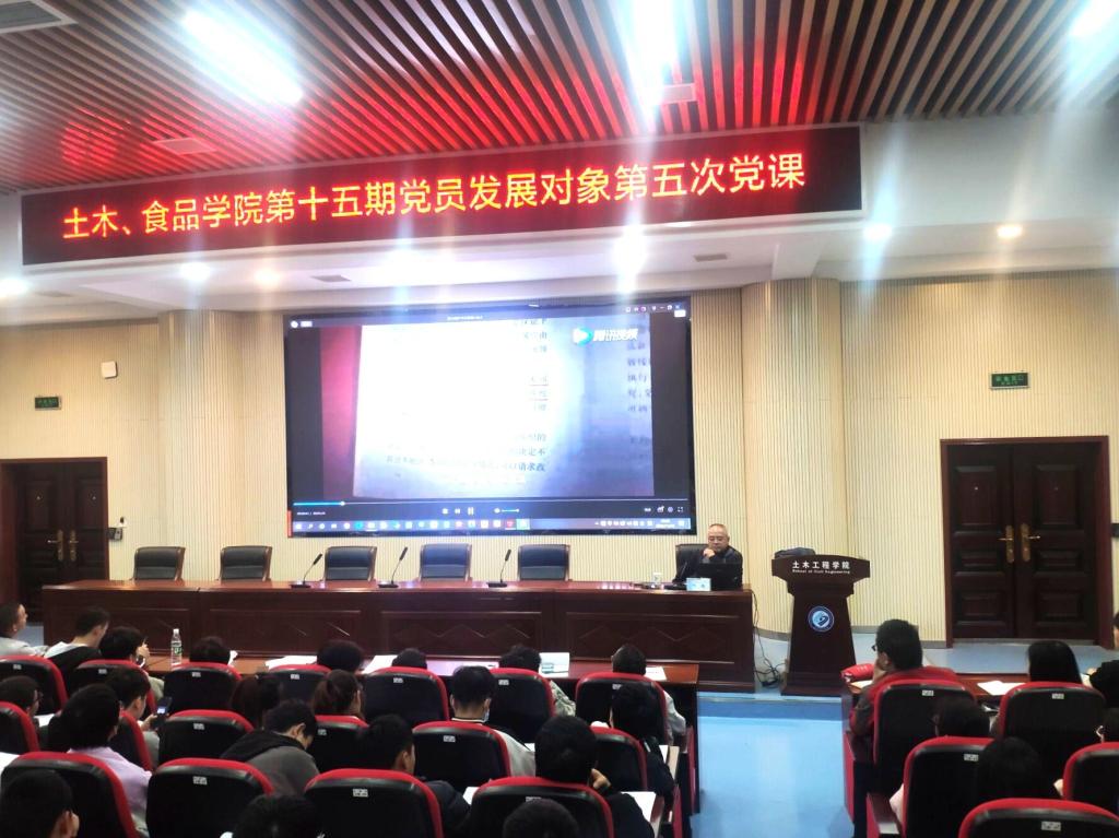 11月15日晚,土木工程学院、食品与生物工程学院于工科二号楼B302顺利开展第十五期发展对象培训班第五次党课。本次党课由化学化工学院专职组织员邓豫老师主讲,食品学院党校培训组崔英杰主持,培训班全体学员参与。