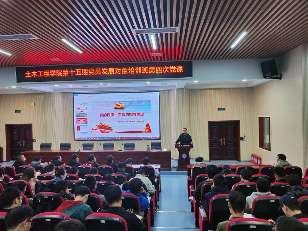 11月10日晚,土木工程学院分党校在工科二号楼B302开展第十五期党员发展对象“党的性质、宗旨与指导思想”专题党课,土木工程学院党委书记江河应邀主讲,党校部候惠文及培训班全体成员参加。