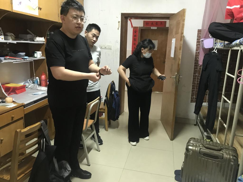 大检查工作共分为8个小组,覆盖弘毅轩1栋、3栋和4栋,严格按照“宿舍是否有明显积尘、是否有异味、是否有发霉迹象,是否有大功率电器”等检查标准,进行全面检查。黄阿明在检查前强调,疫情防控工作丝毫不能松懈,此次安全卫生检查工作要做到“全面、细致,不留隐患”。随后,各位老师根据分组安排,分别前往宿舍进行检查,并将各寝室情况详细记录。