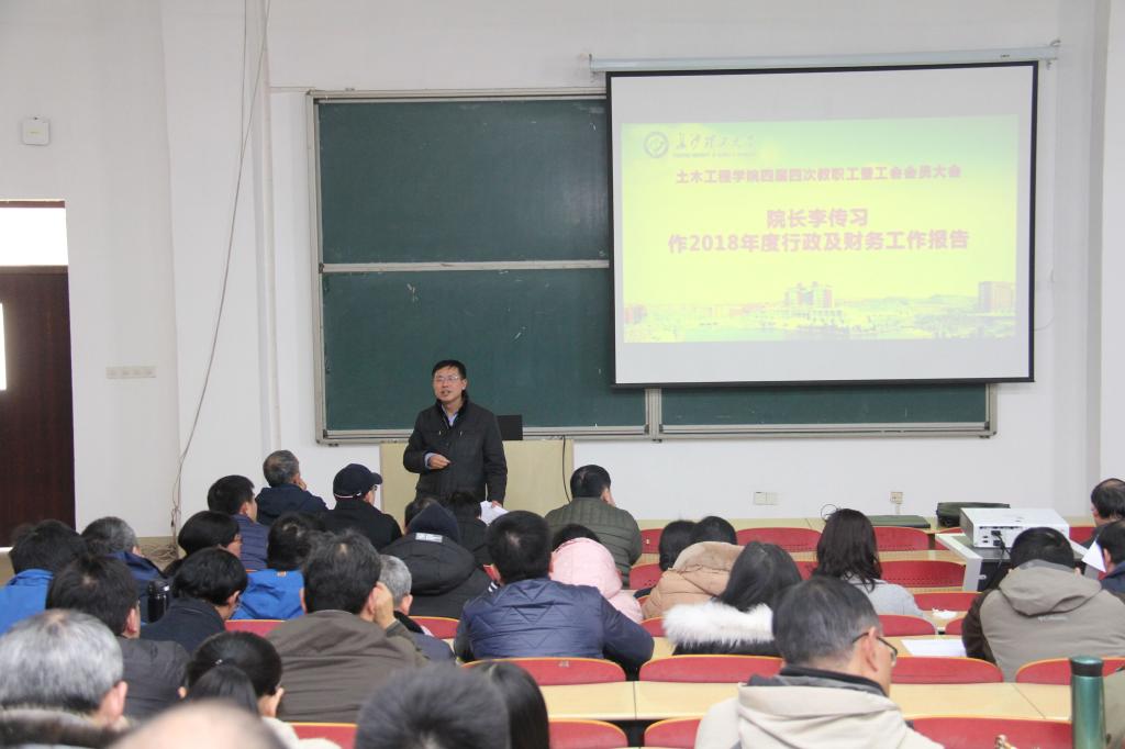 2019年1月22日下午,土木工程学院在工科二号楼B302会议室召开四届四次教职工暨工会会员大会。学院党委书记张可荣,院长李传习,党委副书记、分工会主席王煜坤,其他在校班子成员,以及学院全体教职工出席会议。会议由张可荣主持。
