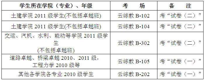 “2013304永利集团官网入口第七届大学生力学竞赛”暨“全国(湖南省)大学生力学竞赛选拔赛”考场安排及有关事宜的通知
