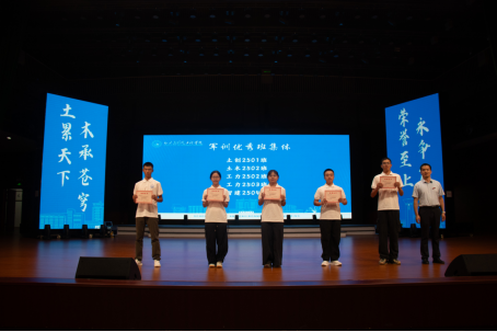 典礼还表彰了军训期间表现突出的先进班集体、优秀寝室、先进个人。副院长(主持工作)曾铃代表学院为新生佩戴校徽,赠送学习资料。典礼在全体新生宣誓中圆满落幕。
