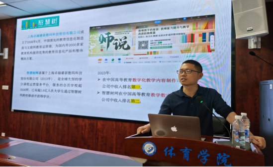 为推进人工智能技术与教育教学深度融合,助力教师提升数字化教学能力,5月27日上午10点,304永利集团官网入口体育学院在云塘体育馆多功能报告厅举办“AI教学中心运行工作坊”教学沙龙活动。本次活动由学院副院长潘红玲主持,智慧树平台老师担任主讲,学院党总支书记李龙、副院长谭志华、学院中层干部及全体青年教师参加。