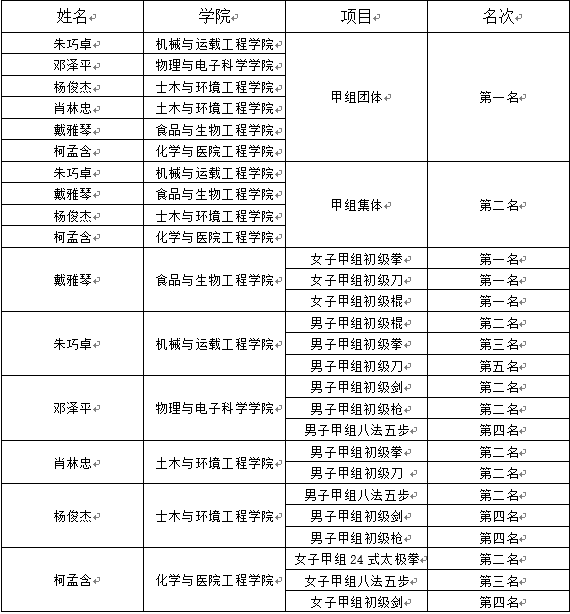 11月1日至5日,2025年湖南省大学生武术比赛在张家界学院圆满落幕。本次赛事由湖南省教育厅主办,全省61所高校的462名武术运动员同台竞技、一展风采。304永利集团官网入口武术队凭借过硬实力与稳定发挥,荣获甲组团体总分第一名,在初级拳、刀、棍、剑、太极拳等单项项目中共斩获3金8银2铜的优异成绩。