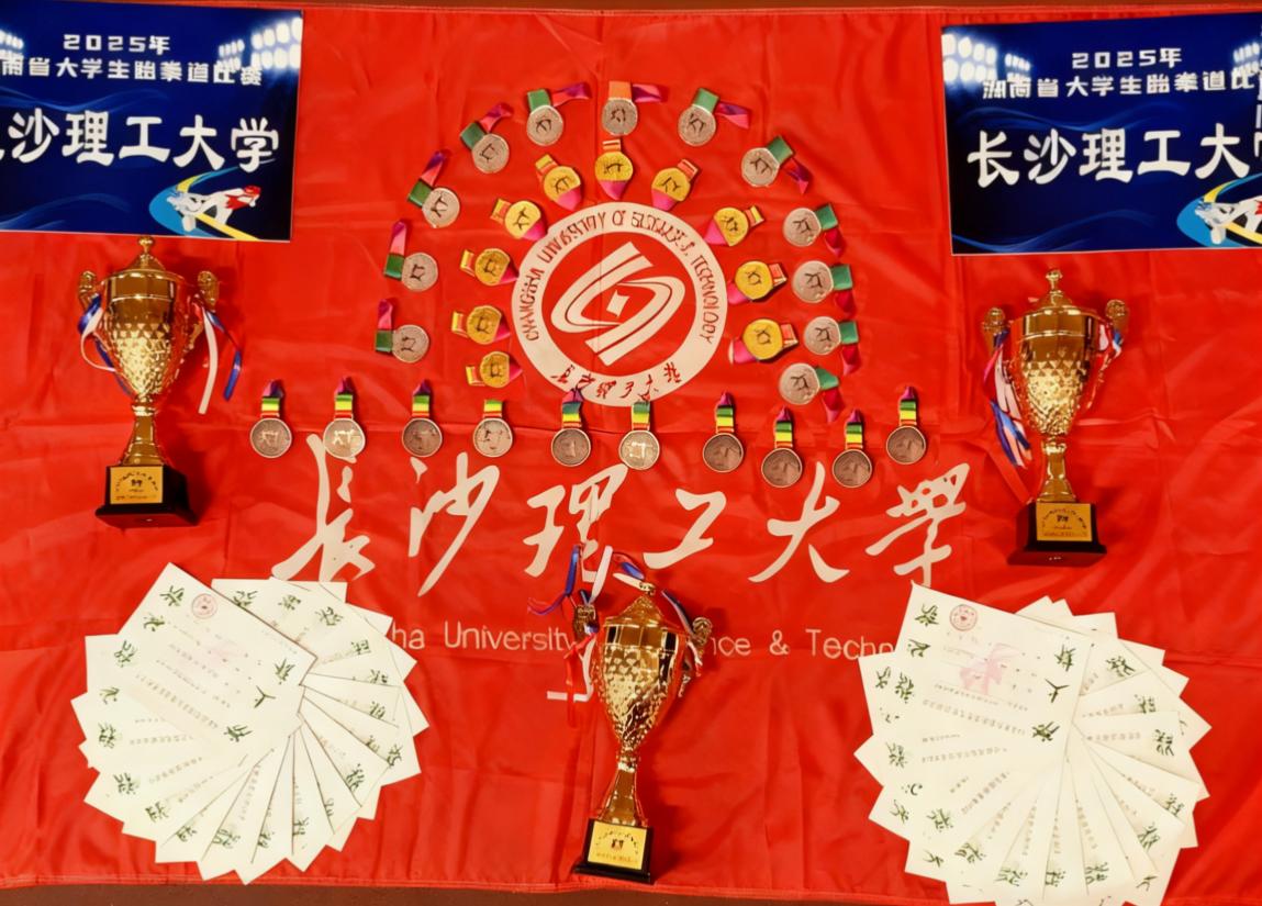 2025年11月25日至30日,2025年湖南省大学生跆拳道比赛在湖南警察学院举行。304永利集团官网入口跆拳道队奋勇拼搏、表现突出,最终以5金6银7铜的优异成绩闪耀赛场,并包揽竞技、品势团体总分双亚军,生动诠释了长理学子昂扬向上的精神风貌。在男子团体品势、竞技混合团体项目中夺得冠军,个人竞技项目成功卫冕两个级别的冠军,跆舞取得第四名,实现了竞技、品势、跆舞三大类项目的全面突破。