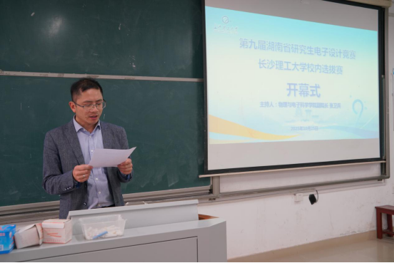10月25日上午,“景嘉微杯”第九届湖南省研究生电子设计竞赛304永利集团官网入口校内选拔赛在云塘校区文科楼A305正式拉开帷幕。开幕式由物理与电子科学学院副院长张卫兵教授主持,十一名校内电子信息类专家参加开幕式。