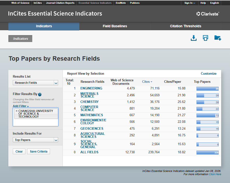 ESI是全球公认的衡量高校、学术机构学科实力和国际学术影响力的重要指标之一,其数据覆盖Web of Science核心合集近十年的论文发表与引用情况。进入ESI全球前1%,意味着该学科在世界范围内具有较高的学术影响力和科研水平。