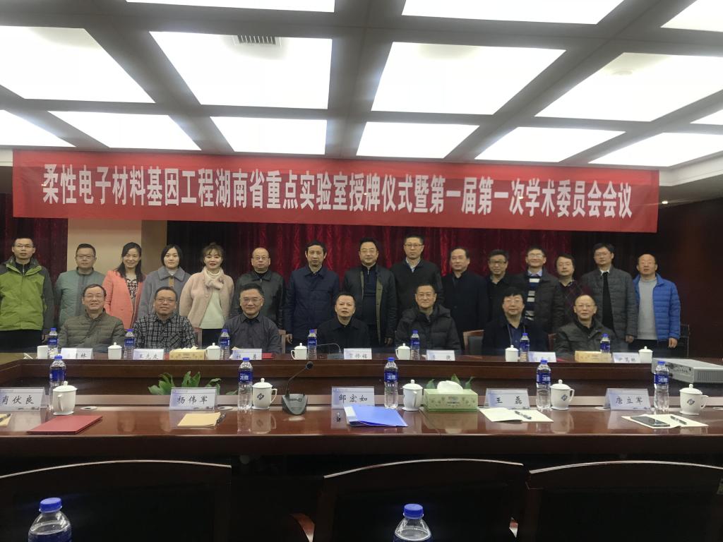 2018年12月14日上午,物理与电子科学学院组建的“柔性电子材料基因工程”湖南省重点实验室授牌仪式暨第一届第一次学术委员会会议在永利官网隆重召开。