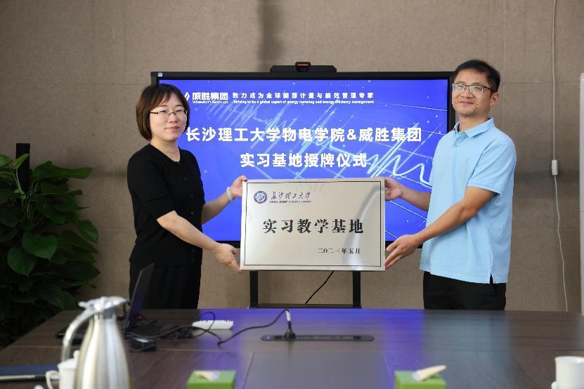 集团人力资源中心主任熊英、人力资源部经理吴洁对物电学院的到来表示欢迎,然后介绍了威胜集团企业发展的历程、企业结构、企业文化、企业现状、企业产学研等基本情况,并指出威胜集团一直同高等院校建立着紧密的产学研合作机制。物电学院张卫兵副院长(主持工作)对威胜集团的热情接待表示感谢,介绍了物电学院的基本情况,并结合学院的专业建设、科研平台、人才培养、产学研和实验室建设等,提出了与威胜集团在实习基地、产学研合作、本科生就业、硕士生培养等方面进一步加强合作的设想,实现校企双赢。双方代表团开展了深入交流,并在合作细节等问题上进行了充分研讨,最后进行了实习基地授牌。