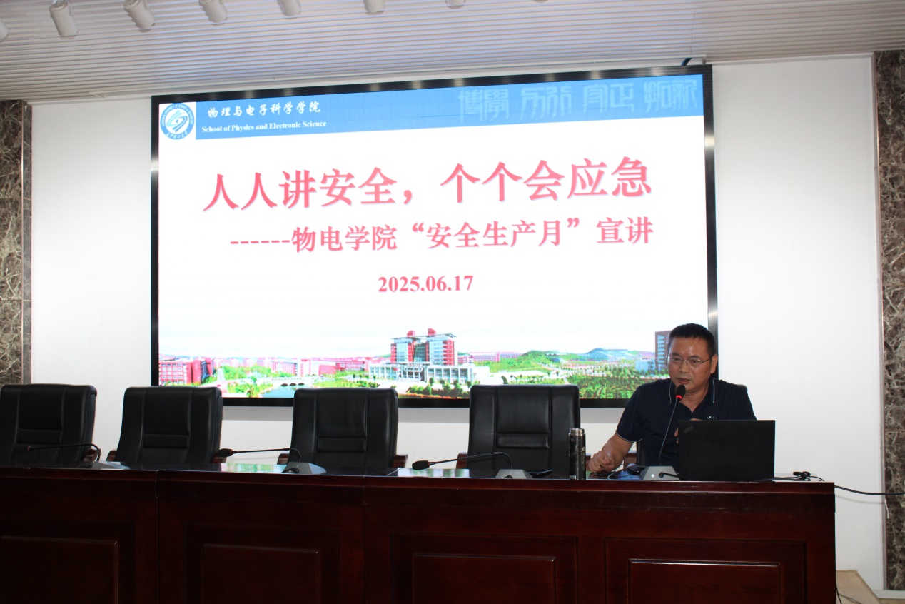 6月17日下午,为深入学习贯彻习近平关于应急管理的重要论述,物电学院组织全院教职工大会,举行了一场“人人讲安全,个个会应急”关于安全生产月的宣讲。