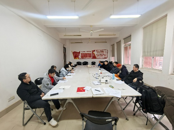 首先,支部书记李振庆介绍了支部2025年度党建工作。2025年度党支部严格落实“三会一课”制度,组织召开支委会会议12次,组织主题党日活动10次;同时支部党员参加学院党员大会4次。通过以上活动的开展,支部党员深入学习了习近平新时代中国特色社会主义思想、中央八项规定精神和党的二十届四中全会精神。同时支部注重理论与实践结合,特别关注老师们在教学中遇到的问题和困难。针对青年教师课堂经验不足的问题,组织老师听青年教师的课,并提出其存在的不足和改进办法。另外,从学生沉迷手机、阅读碎片化、缺乏深度思考这一现实问题出发,充分利用学院一楼大厅焕然一新的空间条件,组织党员教师率先捐书,让场地成为阅读、思想沉淀、文化流动的场所。最后通过主题学习与集体实践,大家群策群力,支部组织力与凝聚力进一步增强,党员参与组织生活的积极性显著提升。