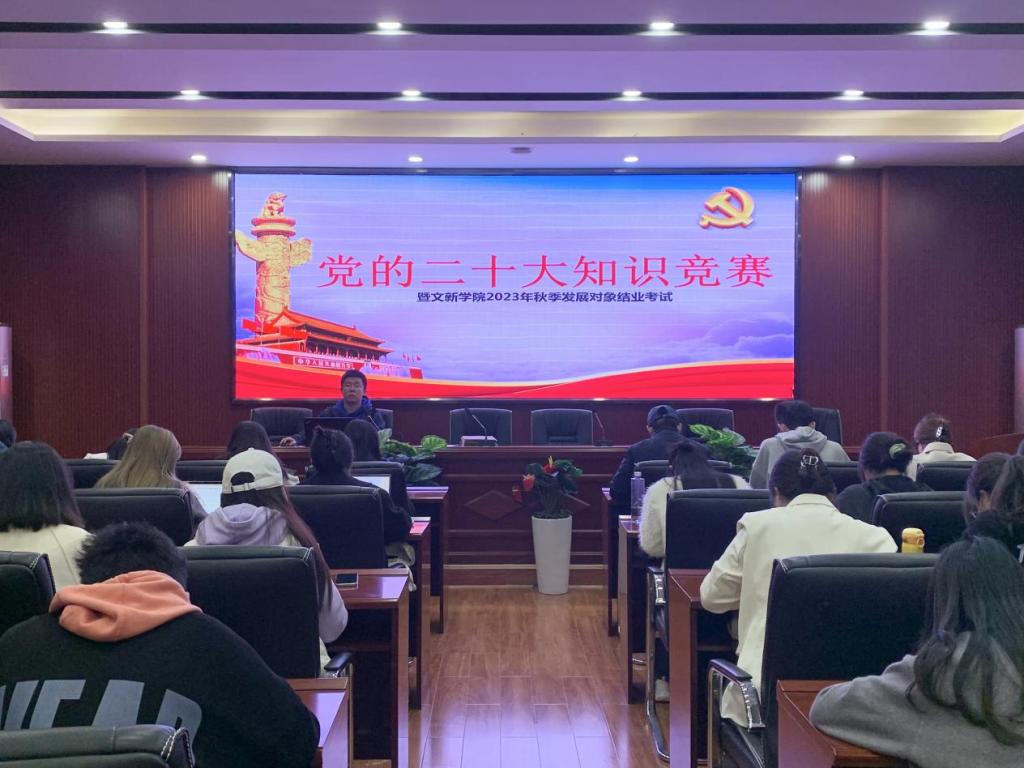 为深入落实并贯彻落实党的二十大精神,积极探索“互联网+党建”的新模式,进一步提升发展对象的理论知识能力水平,11月16日19时,“党的二十大知识竞赛暨文新学院2023年秋季发展对象结业考试”于永利官网金盆岭校区九号教学楼218室成功举行。