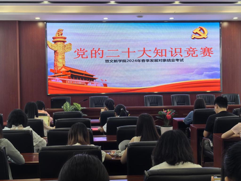为贯彻落实党的二十大精神,积极探索“党建+互联网”新模式,进一步提升发展对象的理论知识水平,5月21日12时,“党的二十大知识竞赛暨文新学院2024年春季发展对象结业考试”于永利官网金盆岭校区九号教学楼218室成功举行。