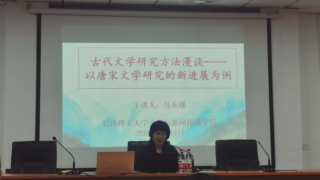 2021年5月14日下午2时30分,北京大学中文系博士、历史系博士后、北京师范大学文学院教授、博士生导师、文学院副院长马东瑶教授受304永利集团官网入口邀请,在金盆岭校区2教101教室进行了以“古代文学研究方法漫谈——以唐宋文学研究的新进展为例”为主题的学术讲座。讲座由文新院郑劭荣教授主持,来自文新院各级研究生、老师参与此次讲座。