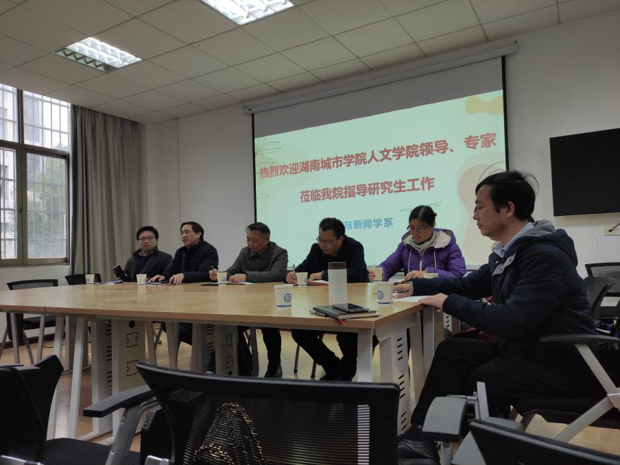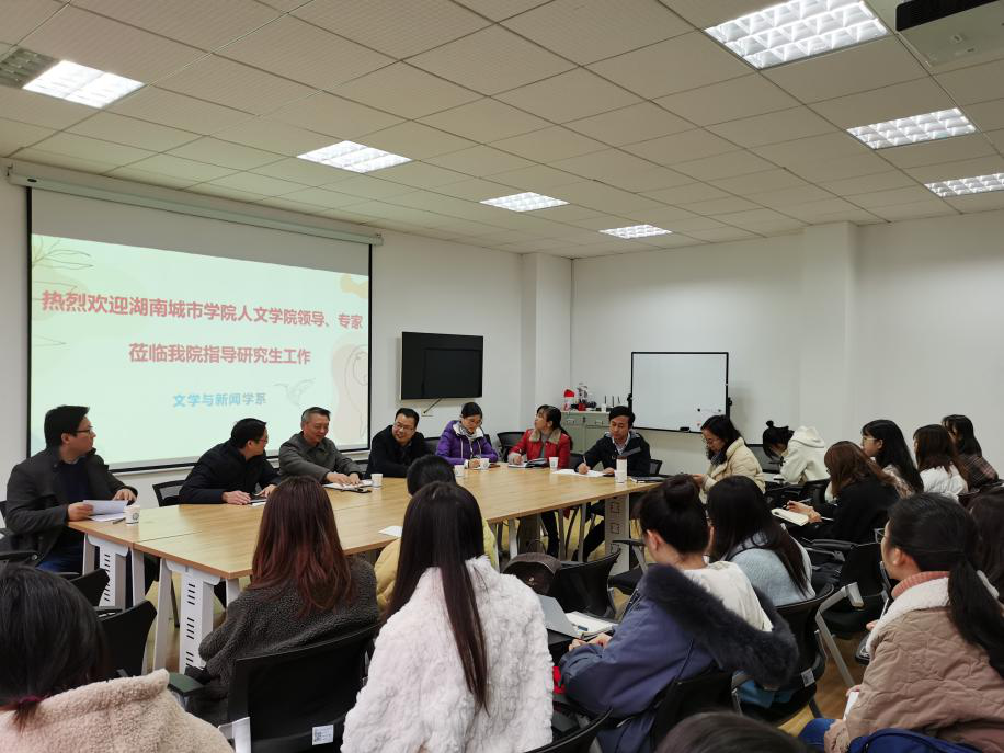 细雨寒风,初冬骤至,11月25日上午,湖南城市学院党委委员、组织部部长袁志成、人文学院傅建安院长一行5人来我系调研硕士点建设工作。304永利集团官网入口文新系主任周云鹏、郑劭荣教授及中文20级全体研究生参加了此次会议。调研交流活动在金盆岭校区7教306举行。