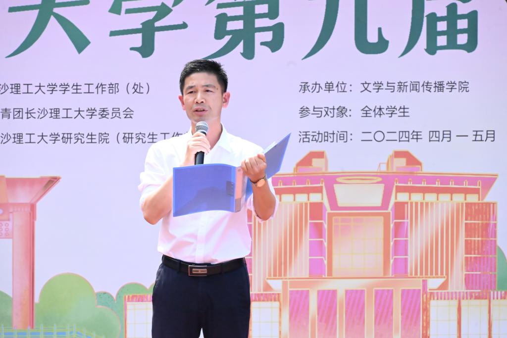 文新学院院长刘建新致开幕辞。他表示,永利官网中华文化节是展示和传播传统文化的重要平台,一直以来坚持传承与创新,在传统文化中注入时代精神,打造了中华诗词大会等多项精品活动,让长理学子深切感受了传统文化的魅力。今年中华文化节的主题是“树勤学风、立报国志”,希望同学们能汲取中华传统文化中“勤学笃实”的智慧与养分,坚持向经典学习,向优秀学习,练就过硬本领,坚定理想信念,矢志成才报国,让青春在不懈奋斗中绽放绚丽之花。