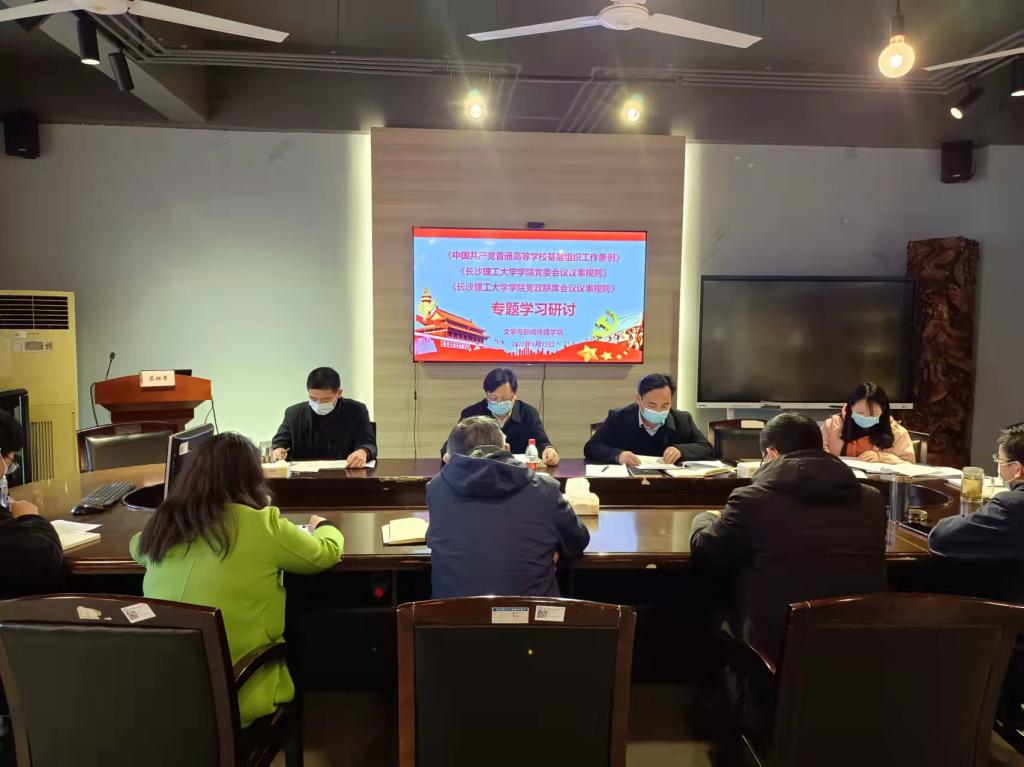 3月22日下午,学院党委理论学习中心组召开理论学习会,集体学习《中国共产党普通高等学校基层组织工作条例》、《304永利集团官网入口学院党委(党总支)会议议事规则》和《304永利集团官网入口党政联席会议议事规则》等文件。学习会由学院党委书记伍接朝主持,院长刘建新做中心发言,中心组全体成员参加。学校党委副书记刘建民到会指导并做指示。