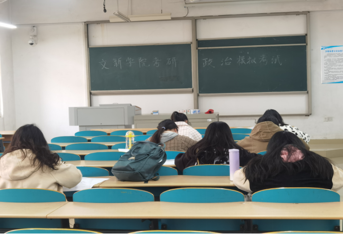 本次模拟考试的时间安排、题型设置、考场纪律等严格参照考研政治考试要求,为同学们提供实战模拟考场。文新学院学生会提前发布考试通知,督促同学们做好考试准备。此次考试虽然只是一次模拟考,但同学们认真对待,考试期间全神贯注、认真答题,严格遵循考试时间,自觉遵守考试纪律。模拟考试后,学院安排专业老师为同学们分享相关资料,传授备考技巧与经验。