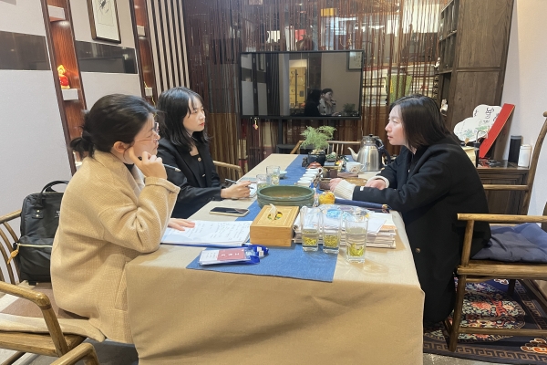 刘俊熠首先对雨花非遗馆“六位一体”发展模式及相关项目进行了介绍,并就非遗文化传承的人才需求与学院进行了讨论。刘莎表示,文化遗产是中国民族精神传承、文脉延续的重要载体,青年学子应当紧握非遗传承的接力棒,为其发展注入青春活力。文新学院与雨花非遗馆可以共建优势资源互补机制,搭建产学研合作新平台,校企联合培养我院三个专业在非遗转化上的高素质人才,为学生的未来发展开拓新路径。黄婧认同这一说法,具备“非遗”特质的人才无论是在专业领域还是就业市场都将拥有广阔的发展空间。