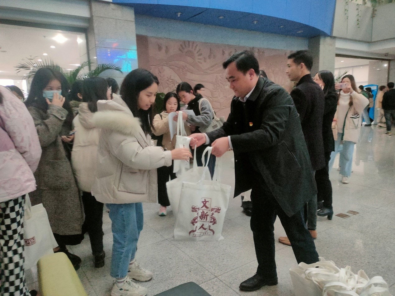 仲冬之际,文新学院备战已久的考研学子进入了最后五天的复习冲刺阶段。为坚定考研信心,积极冲刺迎考,12月21日下午,文新学院党委书记伍接朝、院长刘建新、党委副书记刘莎、毕业班班主任陈璐、陈睿、王彩霞,辅导员吴笛来到学生寝室、图书馆自习室慰问考研学子。