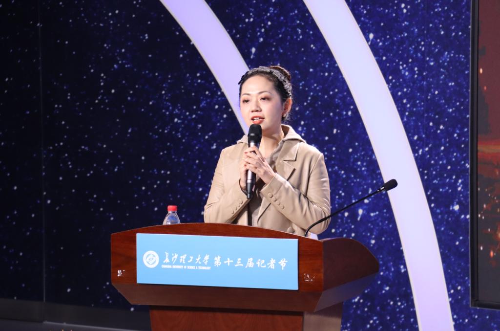 在媒体记者高峰论坛中,今日女报副总编辑、凤网总经理、旅行杂志副总编辑邓魏和湖南日报教育工作室主任、三湘都市报编委黄京,先后从多年媒体从业经验出发进行主题分享,并与同学们进行互动交流。